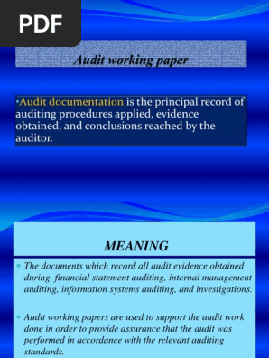 Provide assurance that the work delegated by the audit partner has been. Web Audit working papers definition.